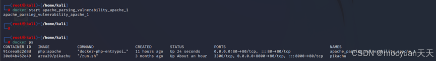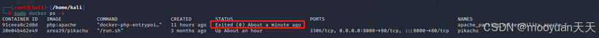 上一步重启apache服务后,靶机重启,此时docker状态为exited,如下所示