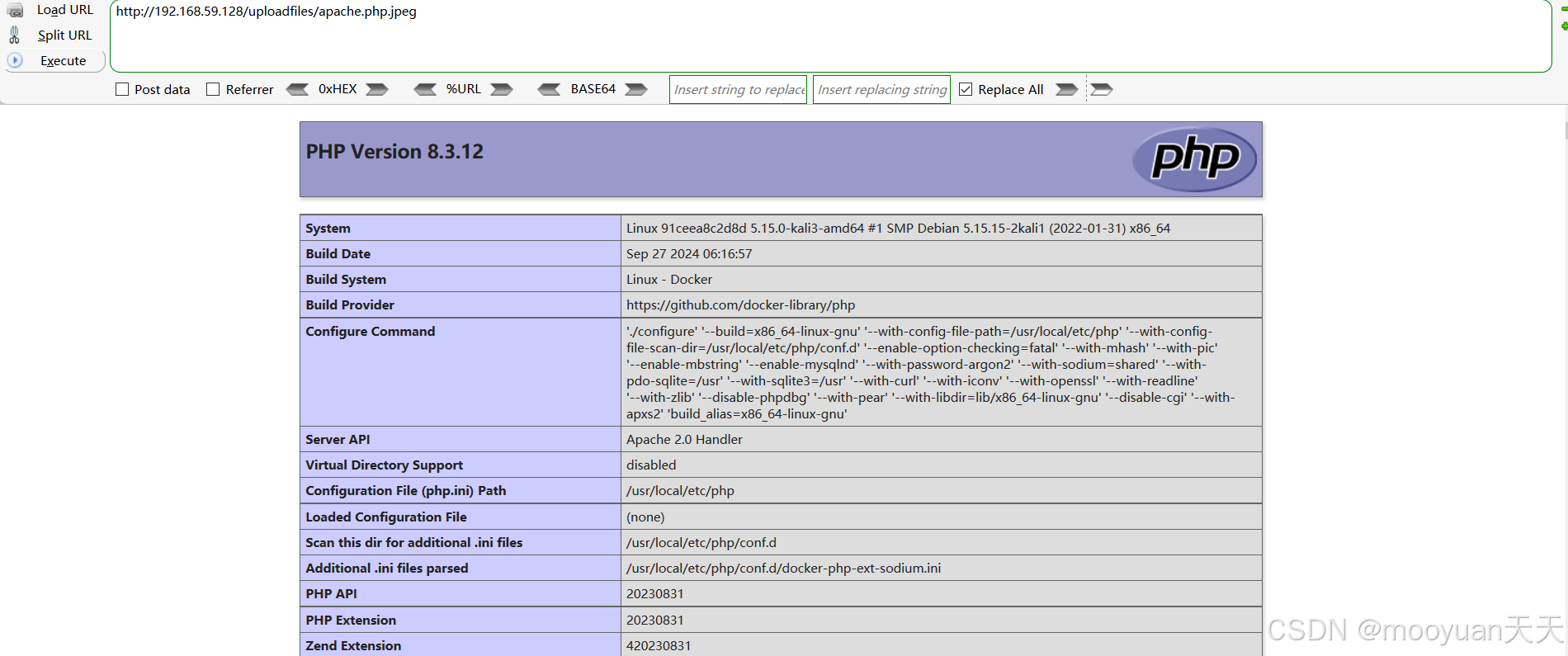 4、访问把靶机根目录下/uploadfiles/apache.php.jpeg文件