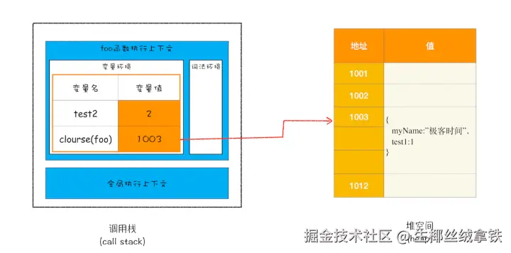 - 创建 closure 对象 :在堆内存 中创建一个