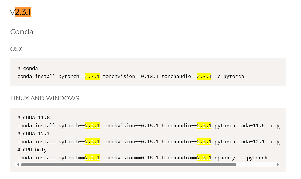 conda install pytorch==2.3.1 torchvision==0.18.1 torchaudio==2.3.1 pytorch-cuda=11.8 -c pytorch -c nvidia