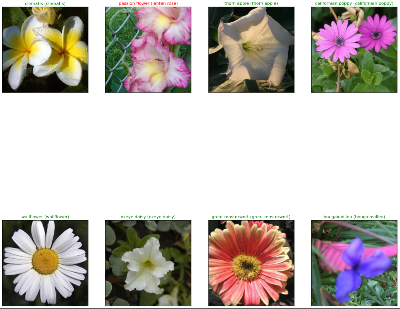 color=("green" if cat_to_name[str(preds[idx])]==cat_to_name[str(labels[idx].item())] else "red"))
