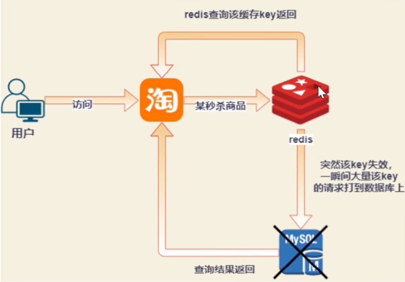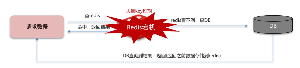 - 或者 Redis 服务宕机,导致大量的请求到达数据库,给数据库带来巨大压力。