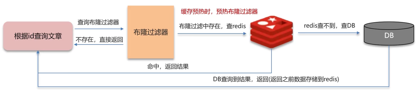 当有请求发来的时候,先让布隆过滤器判断一下数据是否存在: