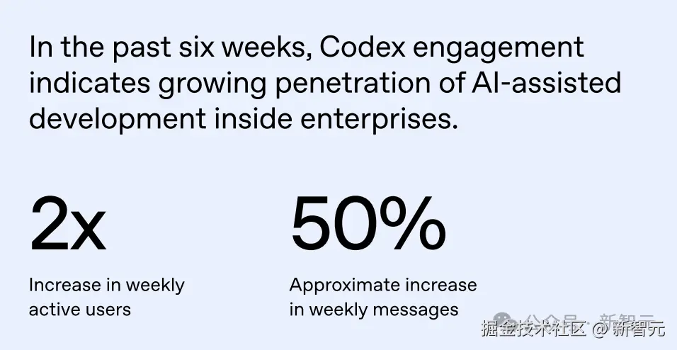 Codex(代码模型)的周活跃用户增长了 「2 倍」,显示代码生成数据的增加。