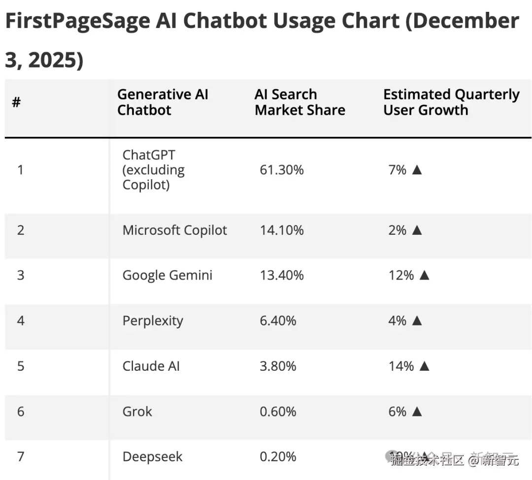 本月初,SEO 和分析公司 FirstPageSage 发布了最新 AI 市场份额报告。