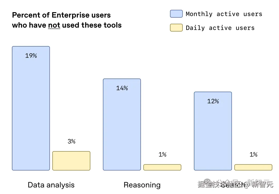 特别是在**「数据分析」**功能上,头部员工的使用量是中位数员工的 「16 倍」。