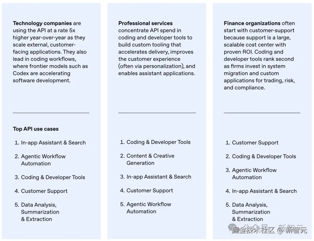 在金融和专业服务领域,「数据分析、摘要与提取」均位列前五大 API 用例。