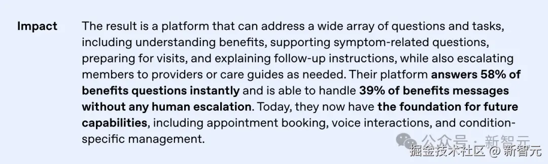 Oscar 的 AI 能够即时回答 「58%」 的福利问题,并能在无需人工干预的情况下处理 「39%」 的福利相关消息,这得益于 AI 与医疗记录和理赔**「数据」**的深度集成。
