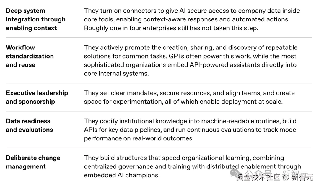 基于 **「8 亿周活跃用户」**和 **「9000 名企业员工」**的数据分析,OpenAI 在最新《企业 AI 现状报告》中得出一个结论: