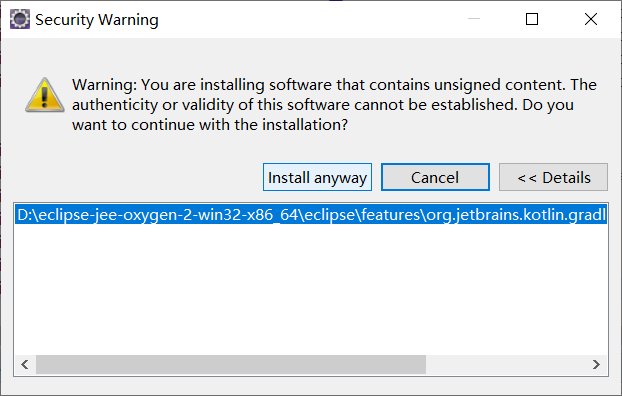 Warning: You are installing software that contains unsigned content. The authenticity or validity of this software cannot be established. Do you want to continue with the installation?