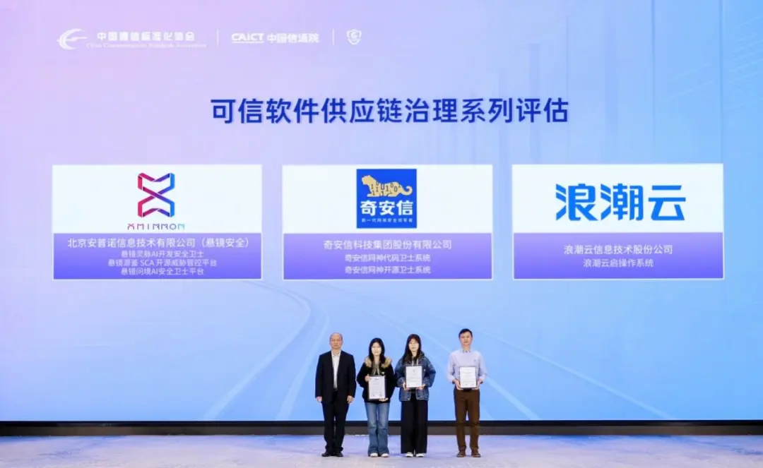 2025年10月28日,由中国通信标准化协会主办的"2025 OSCAR 开源产业大会"在京举行。会上发布了2025可信软件供应链治理系列 评估结果,北京安普诺信息技术有限公司(悬镜安全) 的灵脉AI开发安全卫士 通过**"智能化静态应用程序安全测试(AI SAST)工具能力评估"**并获得证书。