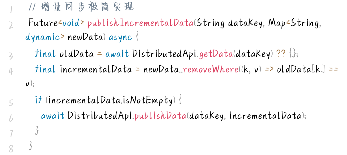 - 增量数据同步:仅同步变更的数据字段,而非全量数据,降低网络传输开销,示例: