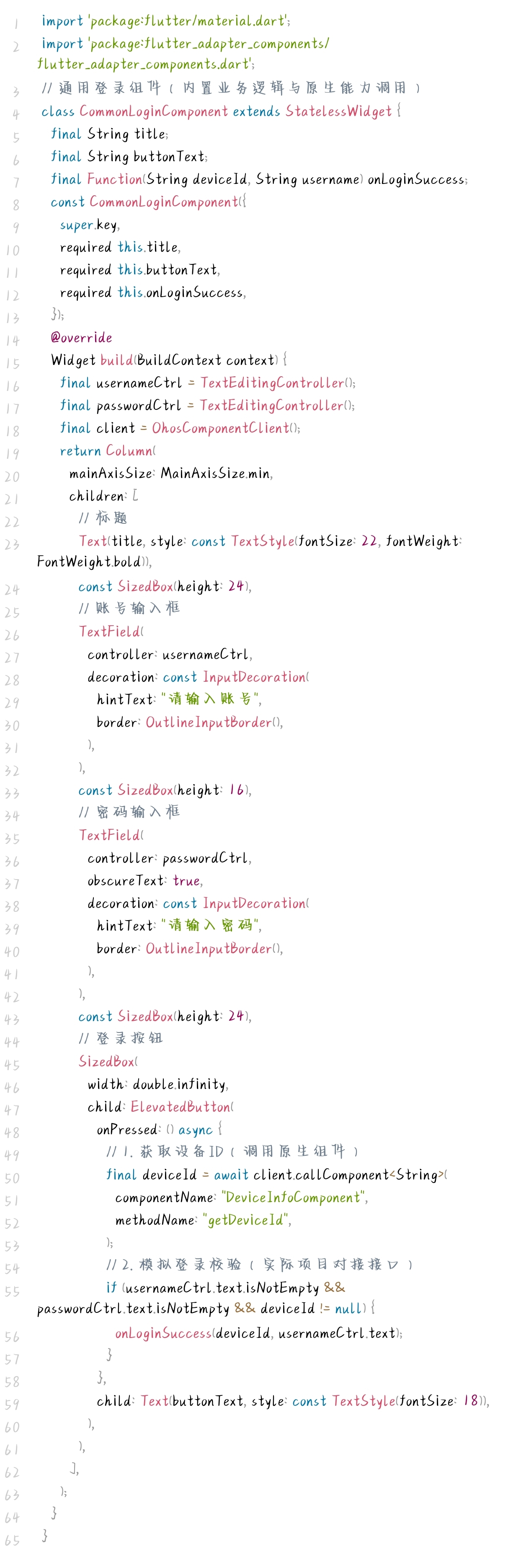 (三)业务基础组件层:通用登录组件(Flutter Dart)