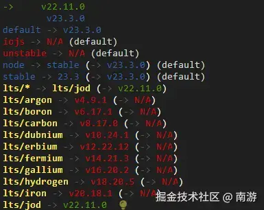 bashnvm ls返回结果如下所示,表示当前已安装v22.11.0、v23.3.0两个版本,正在使用的是v22.11.0版本。