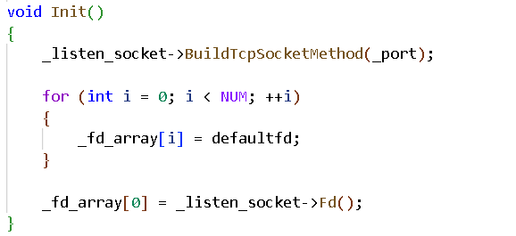 并且还需要先对数组的0号下标位置进行一个赋值,因为我们需要它来监察我们的监听文件描述符: