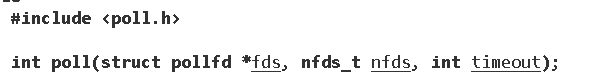 我们先来介绍一下函数的各个参数,首先,第一个参数fds,它是一个指向 struct pollfd 数组的指针。