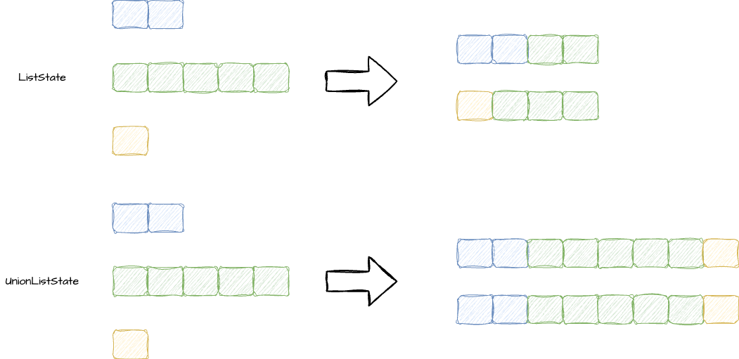| 支持数据类型 | ValueState, ListState, ReducingState, AggregatingState, MapState | ListState, UnionListState, Broadcast State |