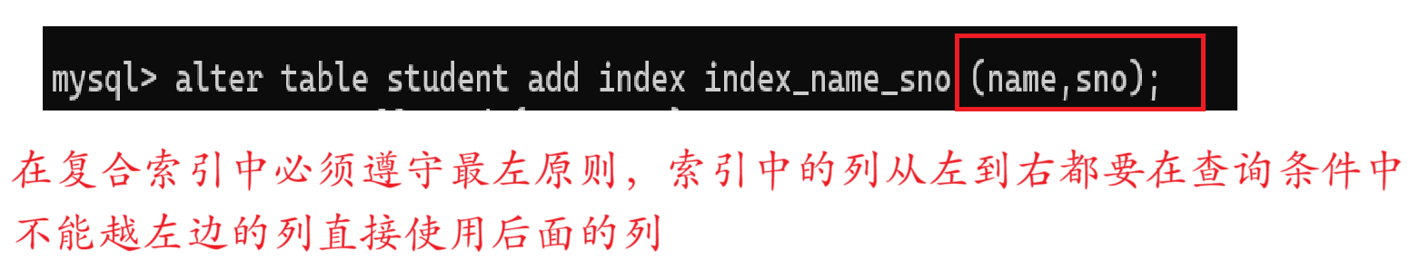 - 可以为多列创建一个组合索引,称为复合索引或者组合索引,复合索引中包括了创建索引时的所有列
