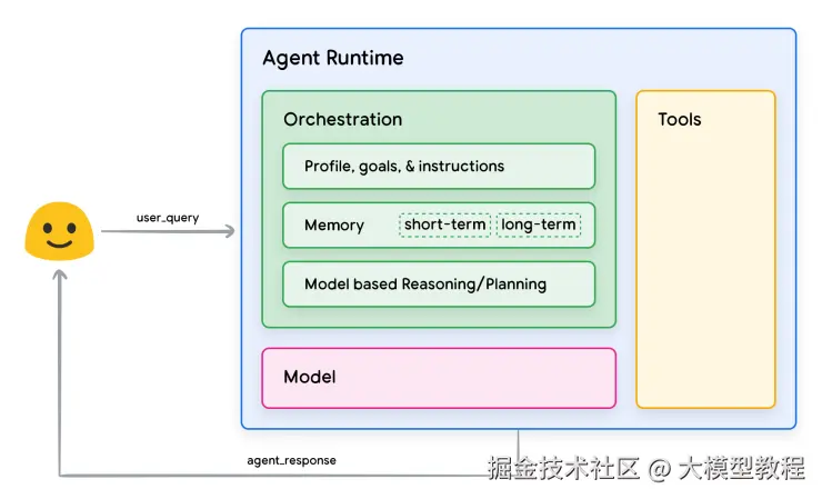 - 推理框架: 模型输出结果往往依赖单一提示;Agent具备内置的认知架构和推理策略(如链式思维、反思框架、树式思维等),能够在编排层中循环迭代推理步骤;