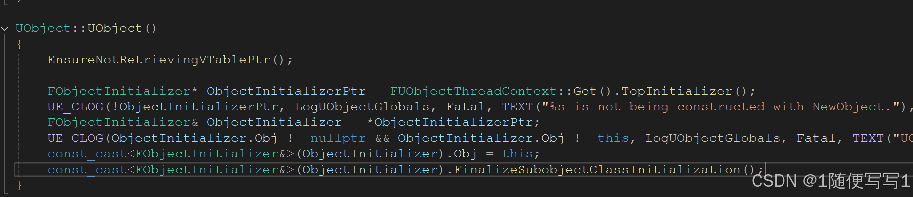 可以看看这块代码,大概就是一系列复杂的构建过程,后边初始化UObject对象;初始化还有一个专门负责的类FObjectInitializer,有部分内容在那个类里边;