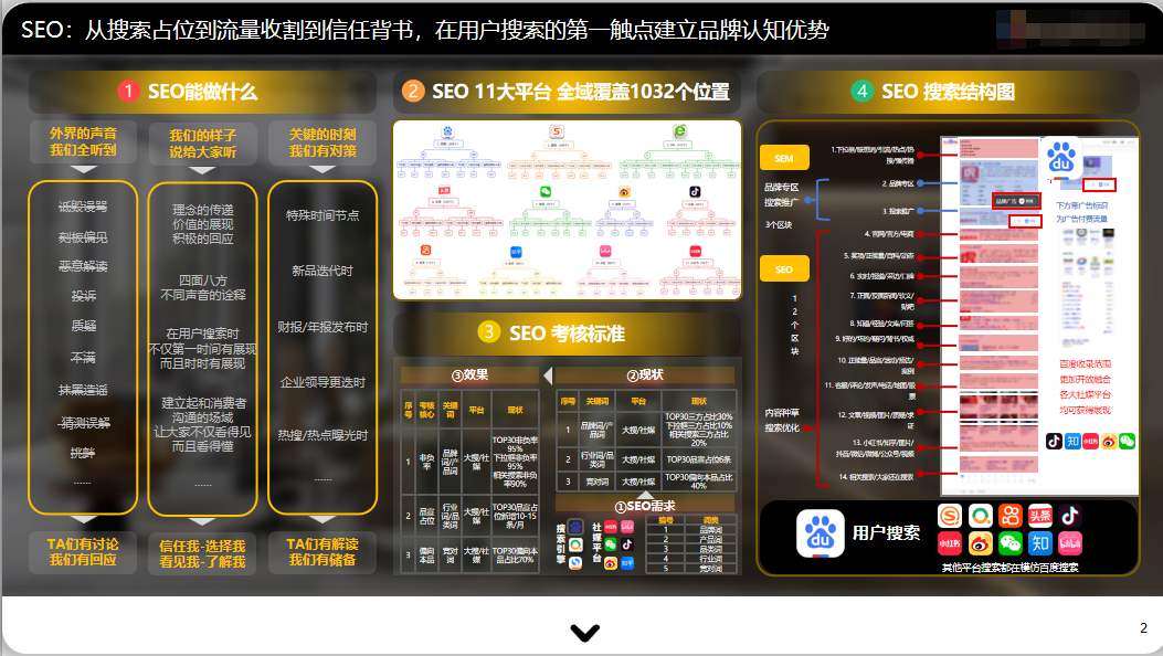 百度在评估内容质量时,越来越重视E-E-A-T原则(经验&专业性&权威性&可信度)。企业需要通过实际案例展示、专业资质认证、权威媒体报道等方式,提升内容的可信度和权威性。