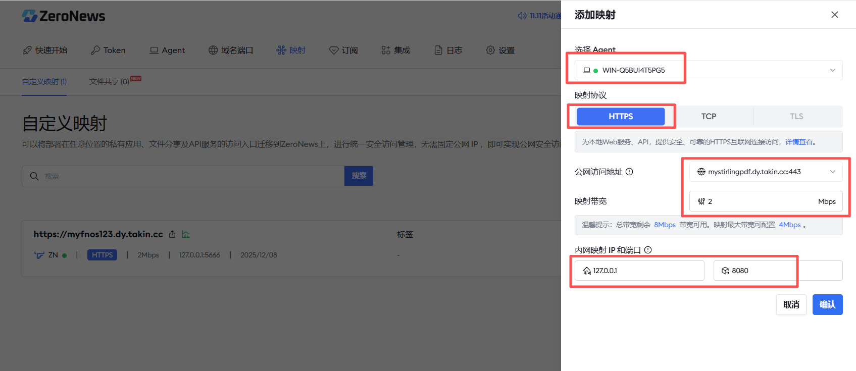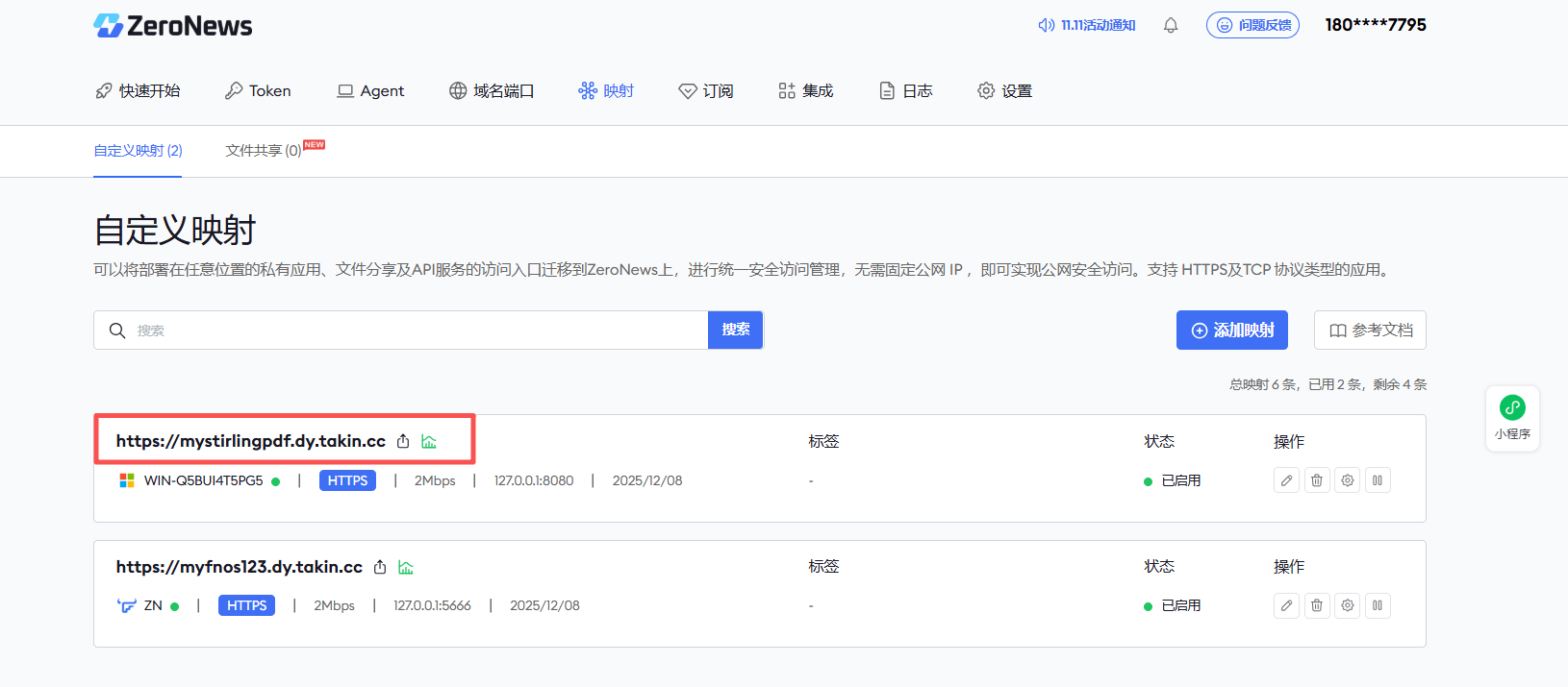5、 按照上述步骤创建完成之后,我们就可以得到一条可公网访问的映射域名