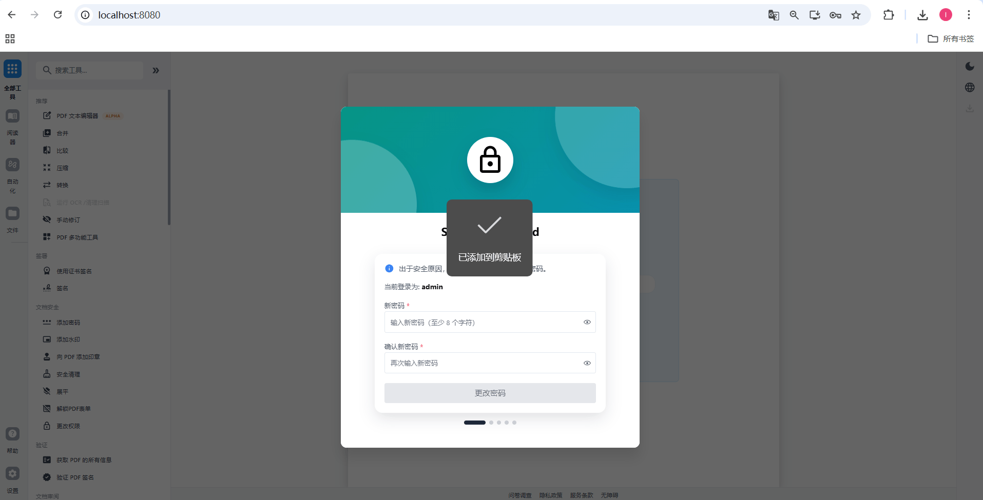 - 输入刚才修改后的账号密码。即可在线使用所有 PDF 处理功能(效果与本地一致)