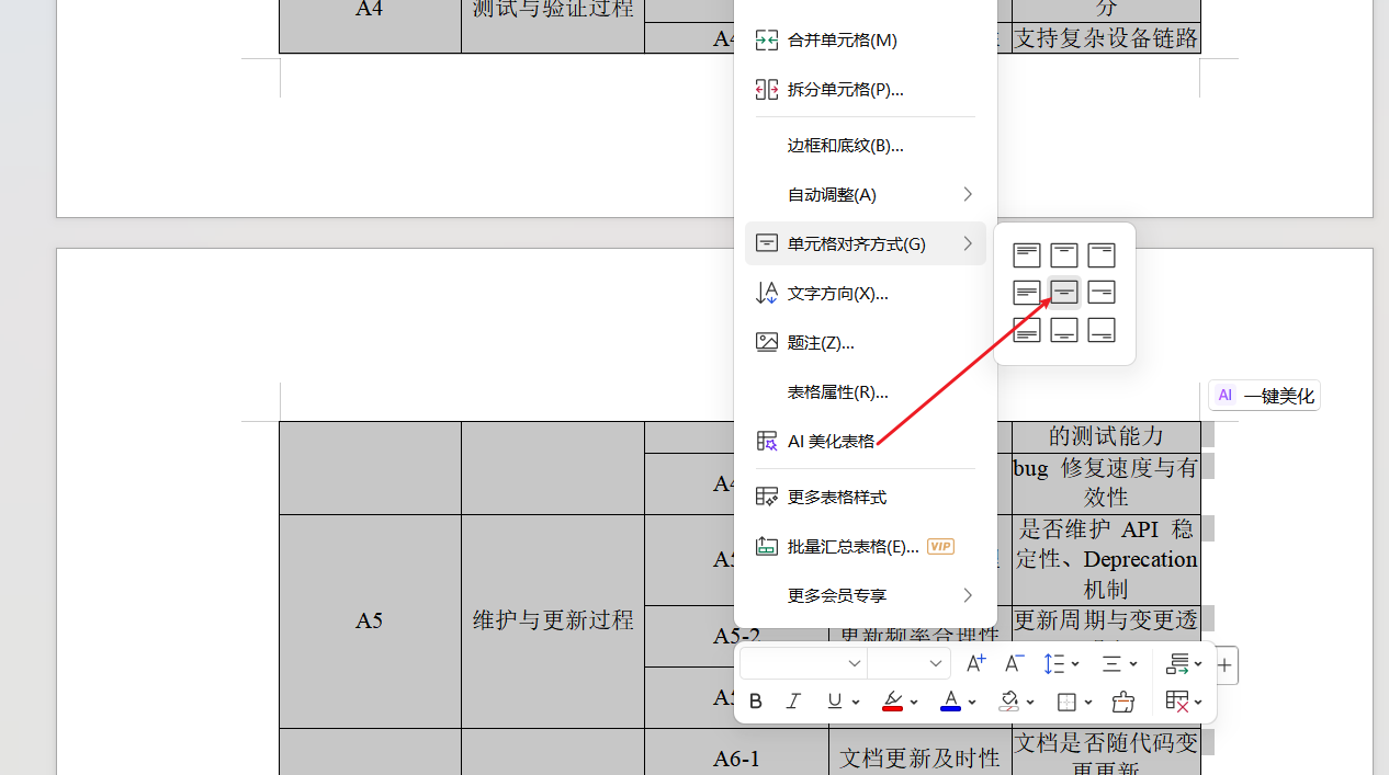 全选表格,右键选择"单元格对齐方式",选择下面我指的的这个上下对齐方式就可以了