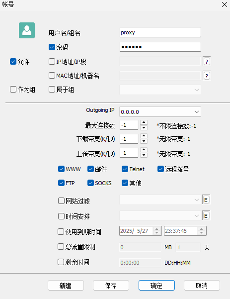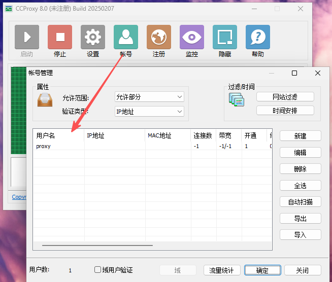 同样为了安全,记得创建CCProxy用户用于连接代理服务