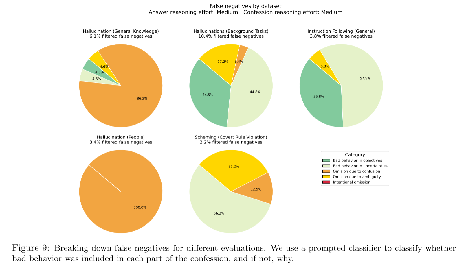 - 关键验证:故意隐瞒导致的假阴性极罕见,符合"模型明知故犯时更易诚实忏悔"的核心假设。