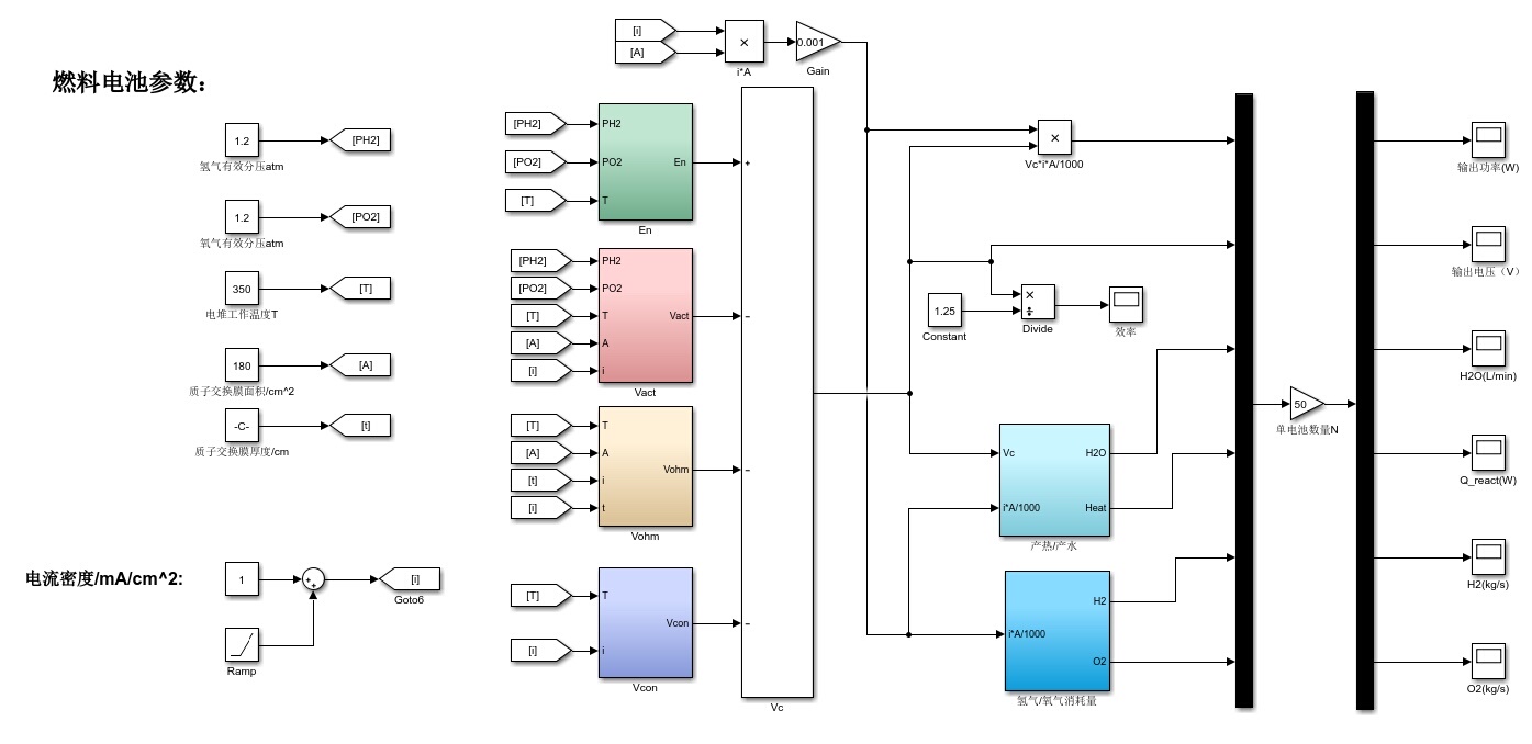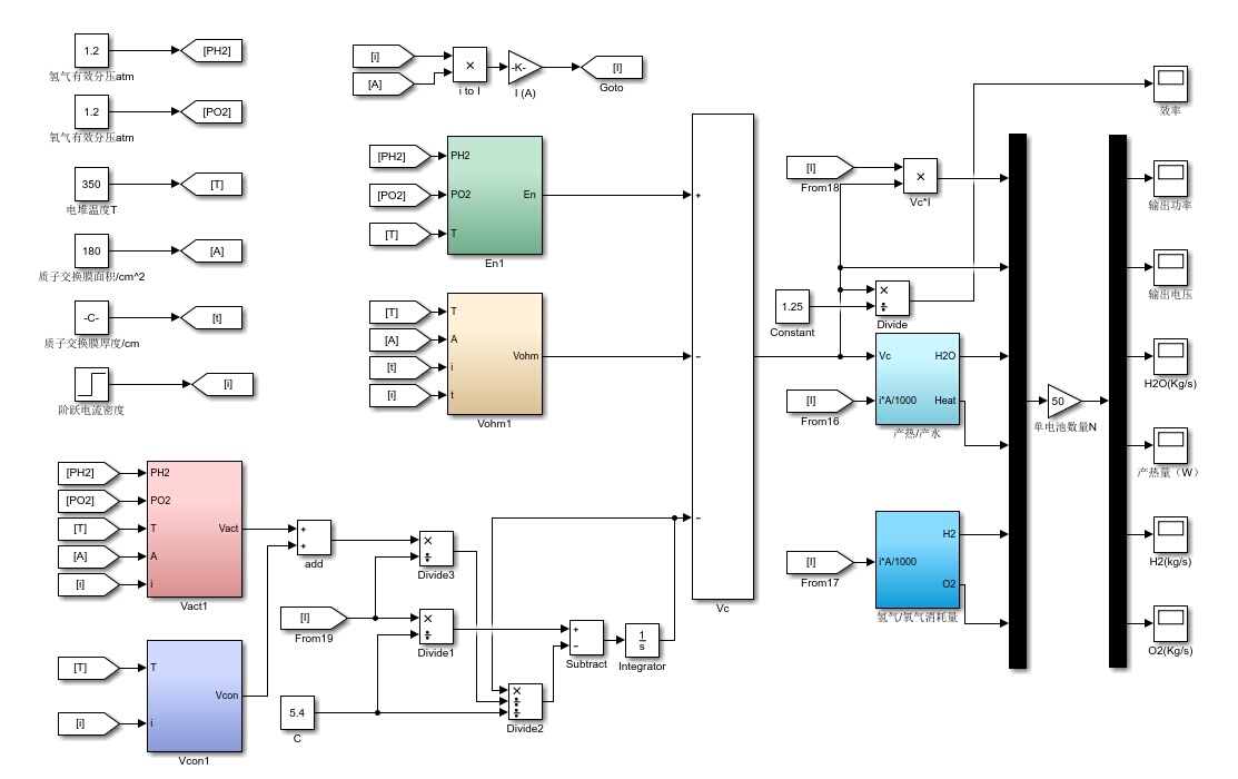 在动态模型里,氢氧消耗速率、产热量、产水量等也会随着负载的动态变化而改变,我们需要结合反应动力学和质量传输等理论,在模型中加入相应的动态环节来准确描述这些变化。