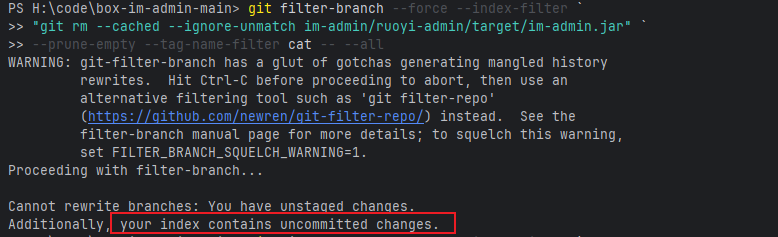 2.1 git filter-branch时 有uncommitted changes解决方案