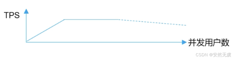 - 后续随着并发用户数达到一个更大的阈值, TPS会逐渐下降.