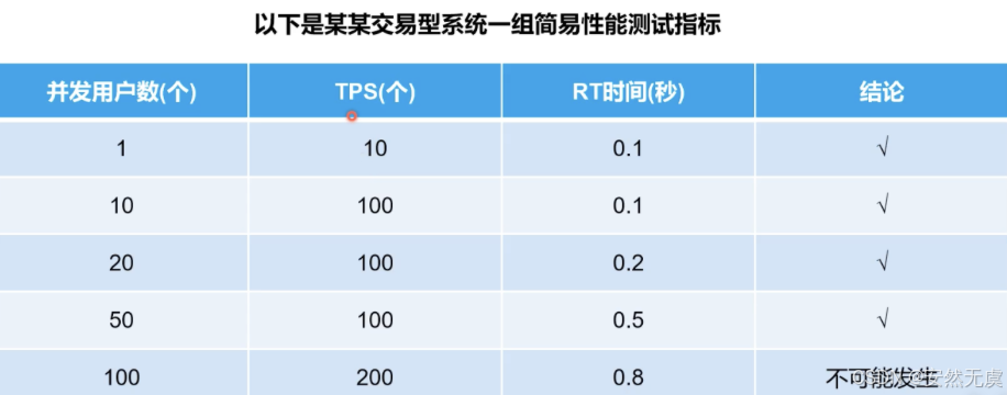 - 通常情况下, TPS = 并发用户数 / 响应时间.