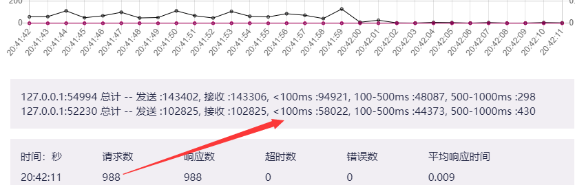 就会每隔1秒创建10个客户端 (同时也建立了10个并发连接), 直到并发连接数达到1000.