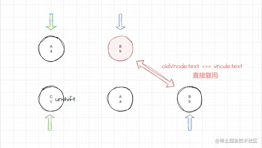 - 那么就是 diff算法 想要考察的最核心的点了,也就是新旧节点的 diff 过程。