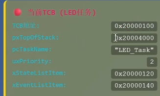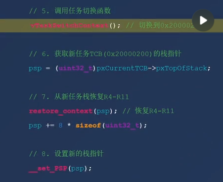 紧接着就是将psp继续赋值,从新的pxCurrentTcb指针取出,此任务的栈顶地址