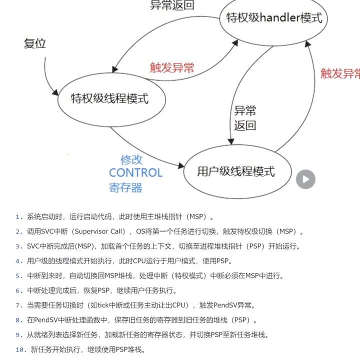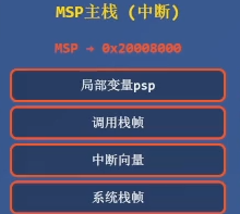 任何时候,处理中断的时候,一定会切回MSP(主堆栈指针)