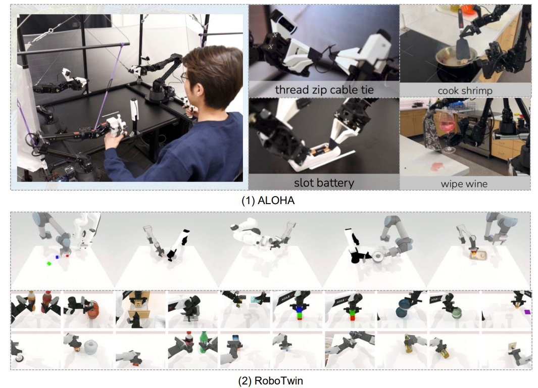 **• 控制算法:**主要基于预定义脚本、动作序列或遥操作,无实时反馈回路。