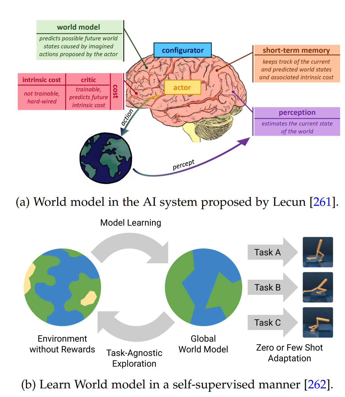 • 第6节进一步回顾世界模型在智能体(包括自动驾驶和关节机器人)中的应用与挑战。