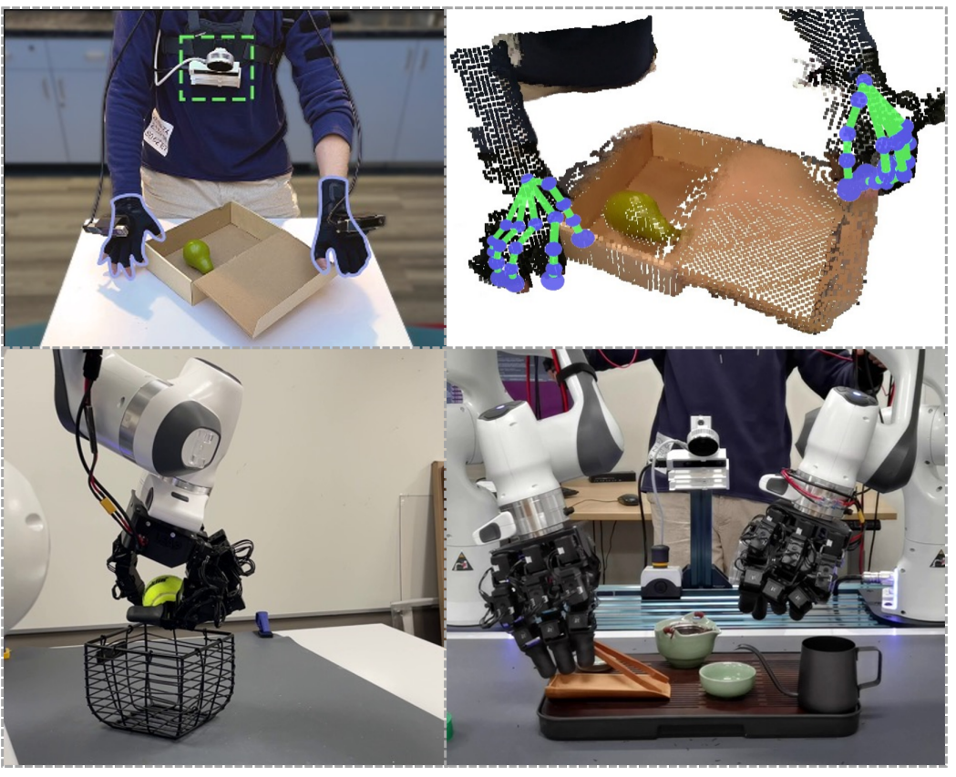 **• 硬件:**集成全面多模态传感器套件(深度摄像头、肌电传感器、力传感阵列)的高性能计算平台。