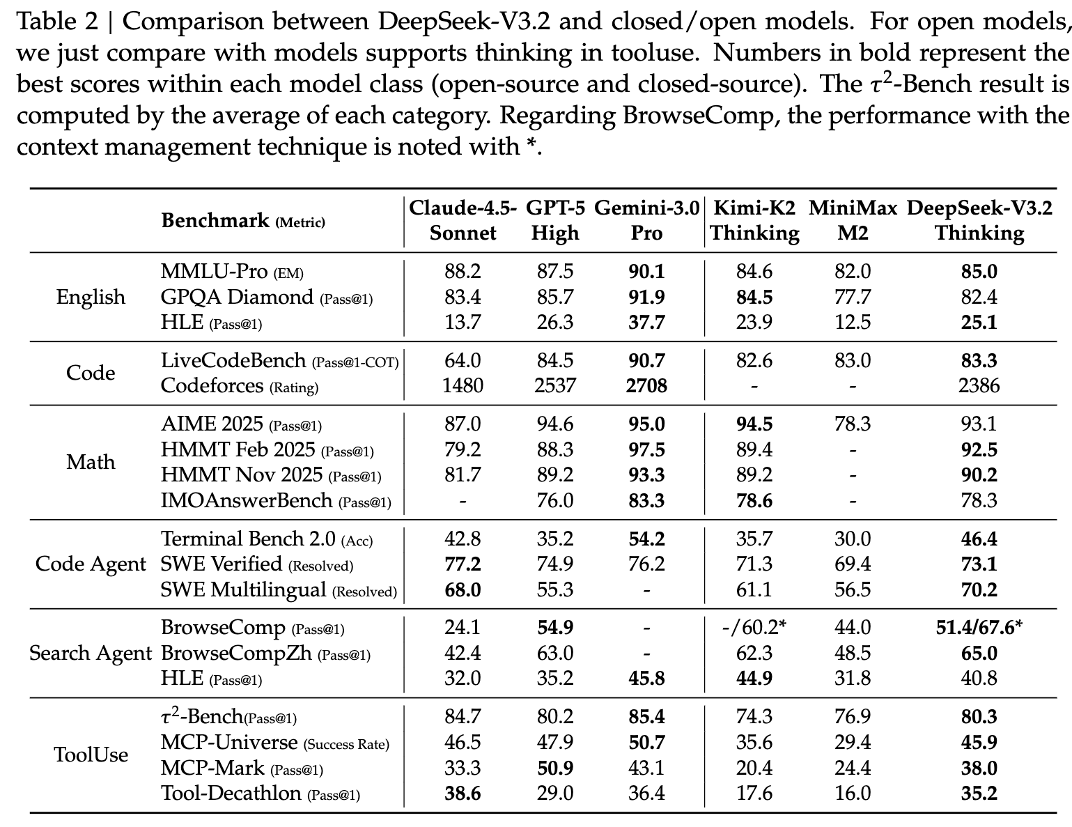 - 凭借增加的计算预算,DeepSeek-V3.2 在推理基准上实现了与 GPT-5 相当的表现