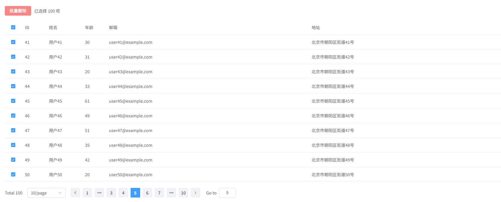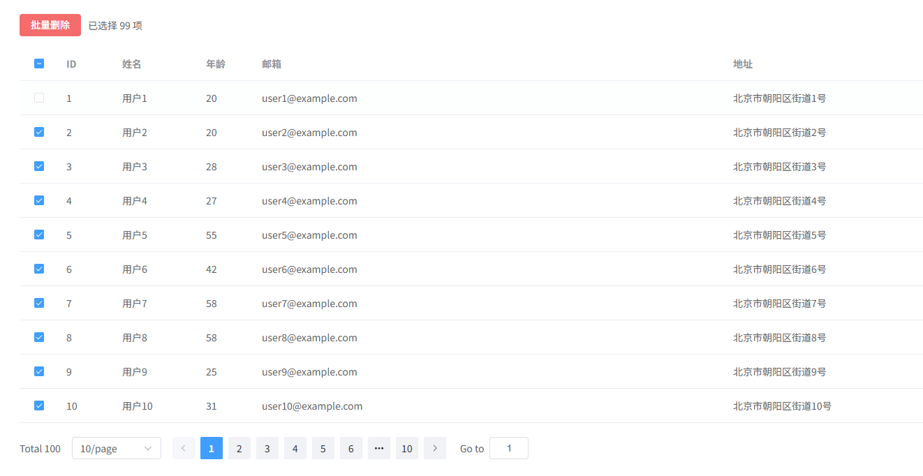 当数据是一次性全部返回的时候,我们需要全选的时候选择的是全部数据,这时组件库不满足需求
