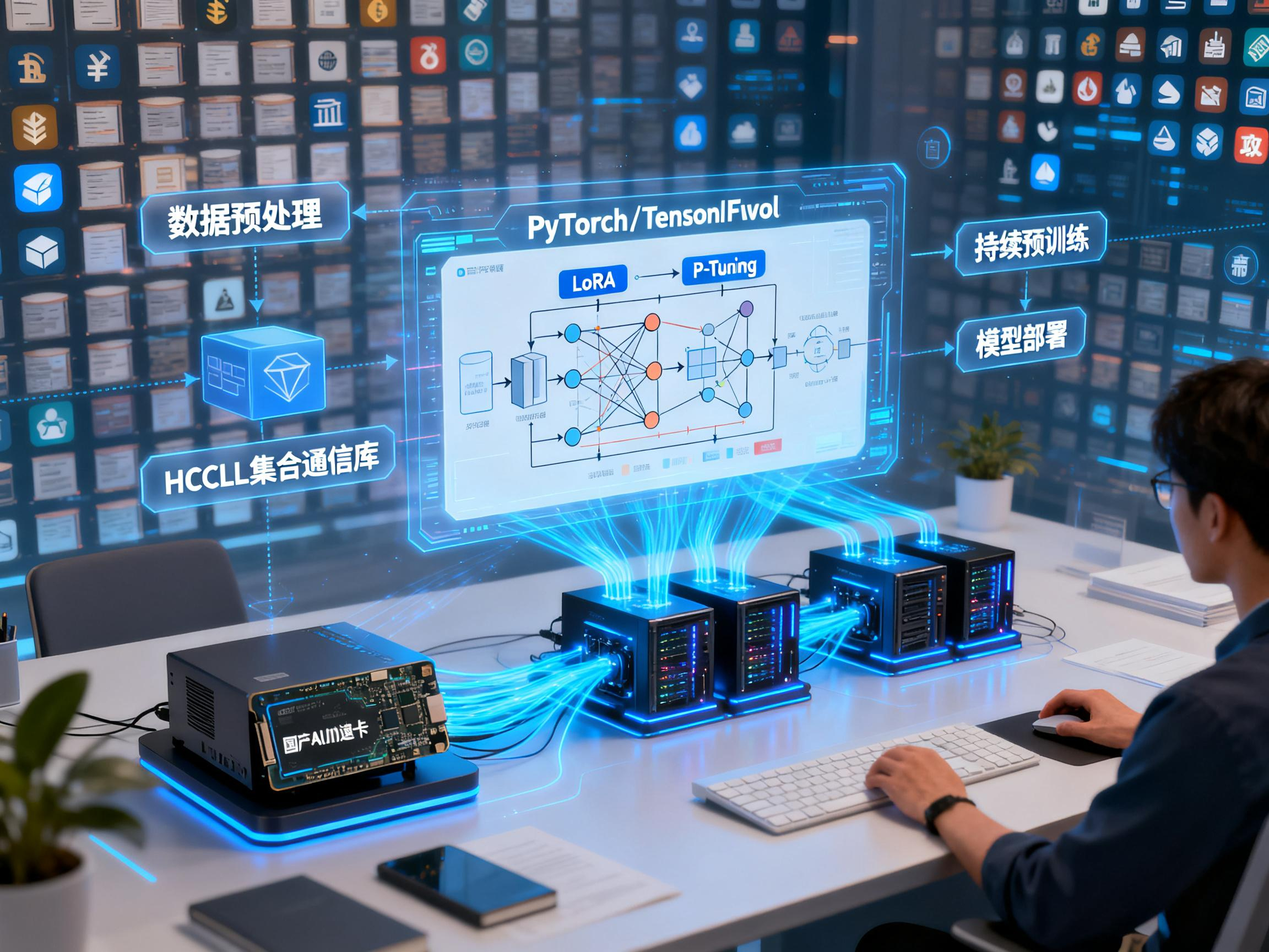针对金融、医疗、制造、政务等不同垂直领域,平台提供从数据预处理、模型架构设计、到大规模分布式训练的全流程服务。例如,可以基于国产基础大模型,使用领域特有的语料进行持续预训练(Continual Pre-training),让模型掌握行业术语和知识体系。