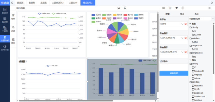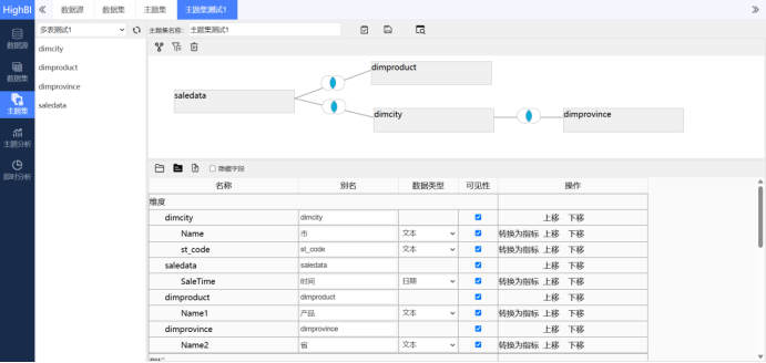 通过选择的多张业务数据表建立数据表关联关系,过滤数据,设置维度/指标,增加计算字段,创建目录管理等,预览和导出数据。