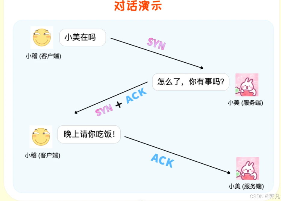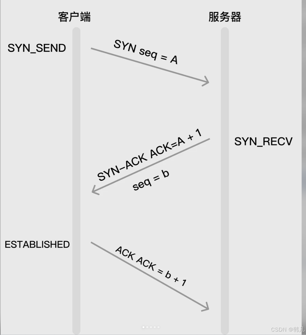 握手之前主动打开连接的客户端结束CLOSED阶段,被动打开的服务器端也结束CLOSED阶段,并进入LISTEN阶段。随后开始"三次握手":