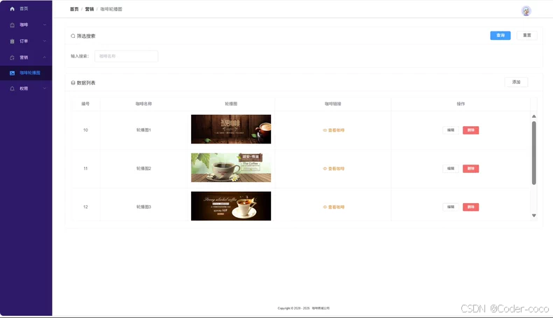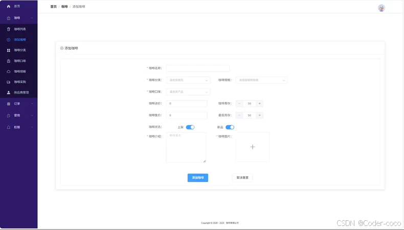 基于springboot + vue咖啡商城系统