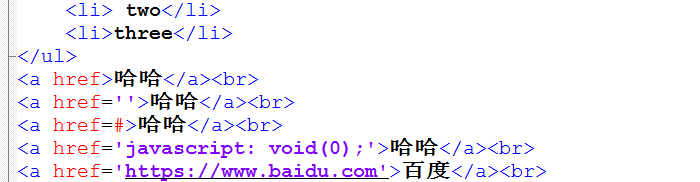 <a href='javascript: void(0);'>哈哈3</a> <!-- javascript: void(0);是一段js代码