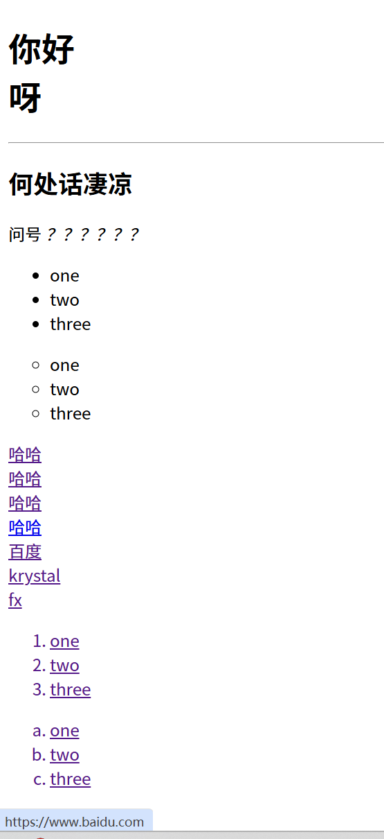 <hn>...</hn> 其中n为1--6的值。 标题标签(加粗、独占一行)
