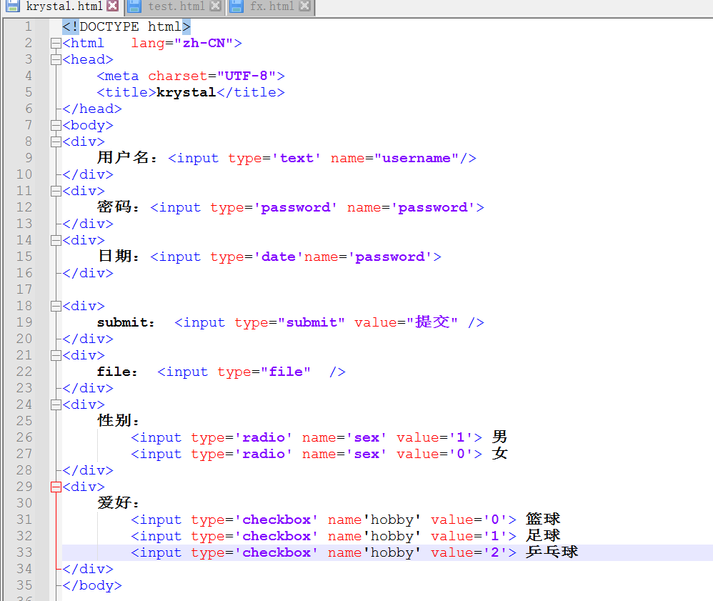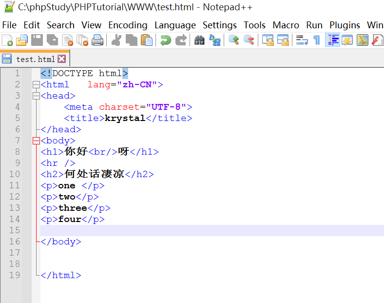<html lang="zh-CN"> <!--这个lang表示语言,zh-CN是中文的意思,就是说,整个文档的内容以中文为主,如果以英文为主,就写成lang='en'-->